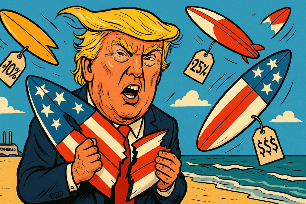 Trump se ha sacado una jugada maestra (o bomba de humo, según cómo lo veas): nuevos aranceles generales del 10% a todas las importaciones, más tarifas específicas para países “malos”. Esto, claro, afecta a casi todos los productos… incluyendo nuestras queridas tablas de surf.